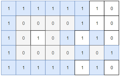 - 给出一个地图,1 代表海水,0 代表陆地。要求找出四周都是海水的陆地的总个数。