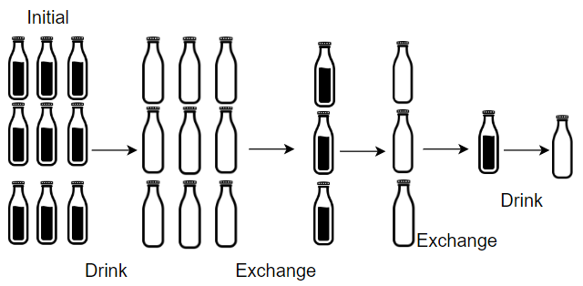 请你计算 最多 能喝到多少瓶酒。