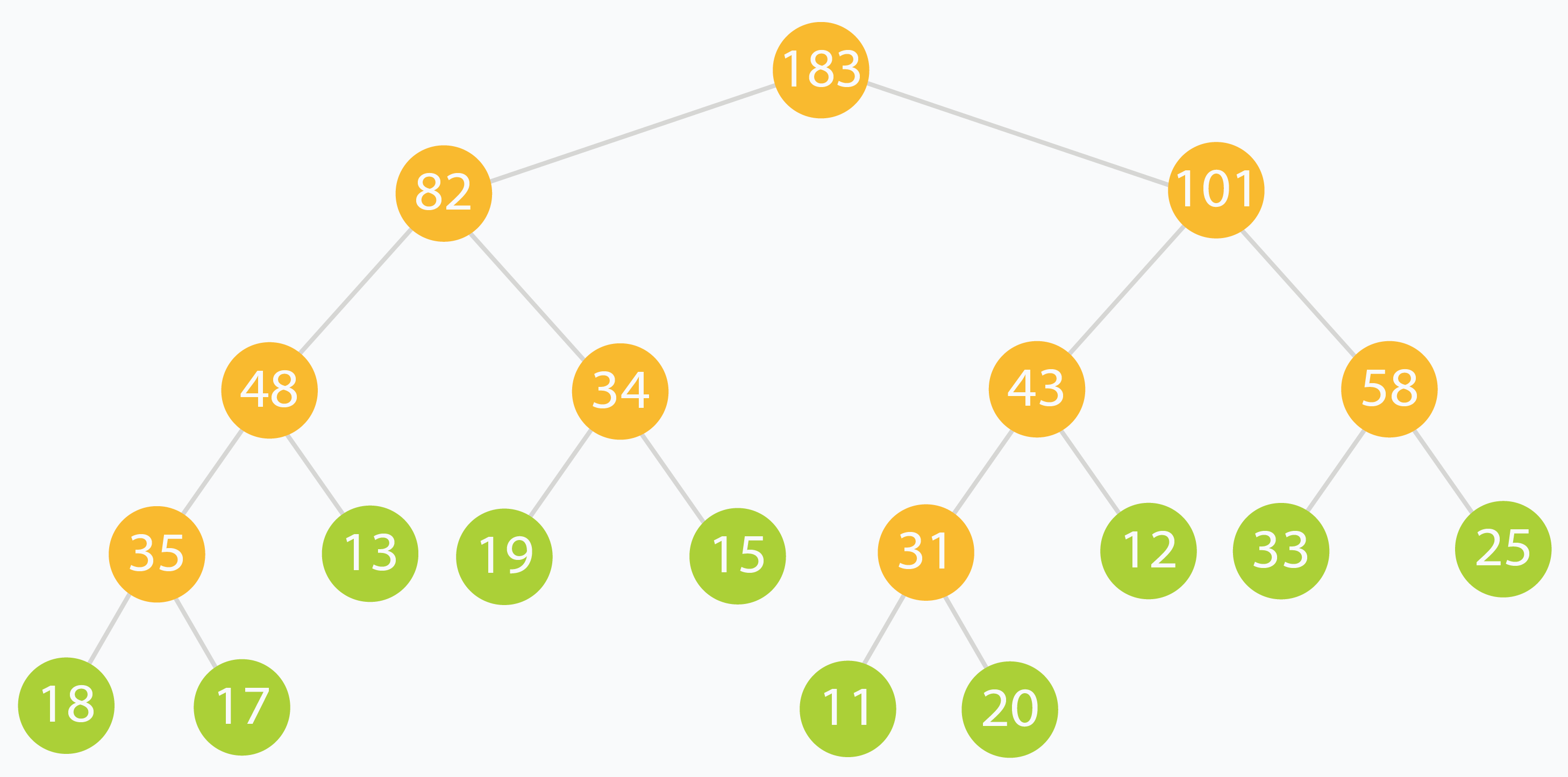tree[] = [ 183, 82, 101, 48, 34, 43, 58, 35, 13, 19, 15, 31, 12, 33, 25, 18, 17, 0, 0, 0, 0, 0, 0, 11, 20, 0, 0, 0, 0, 0, 0 ]