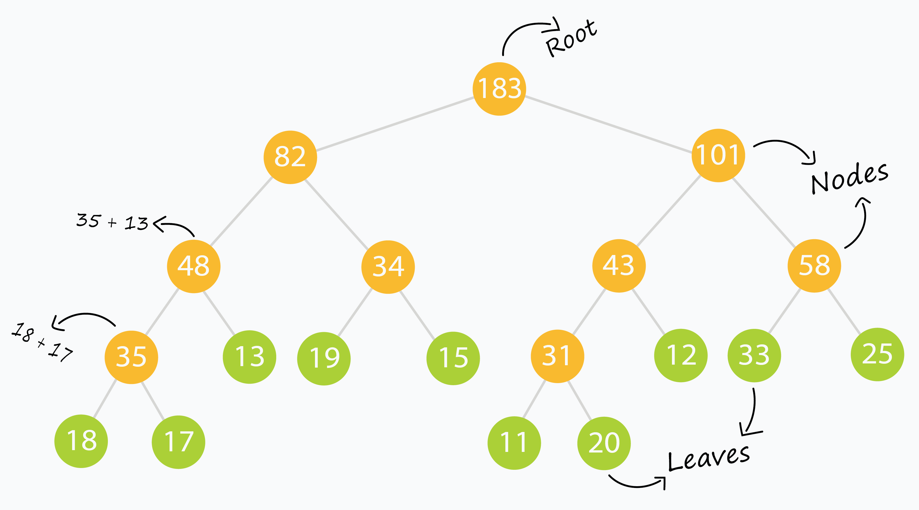 - Nốt gốc (root) thường đại diện toàn bộ đoạn dữ liệu, ở đây là