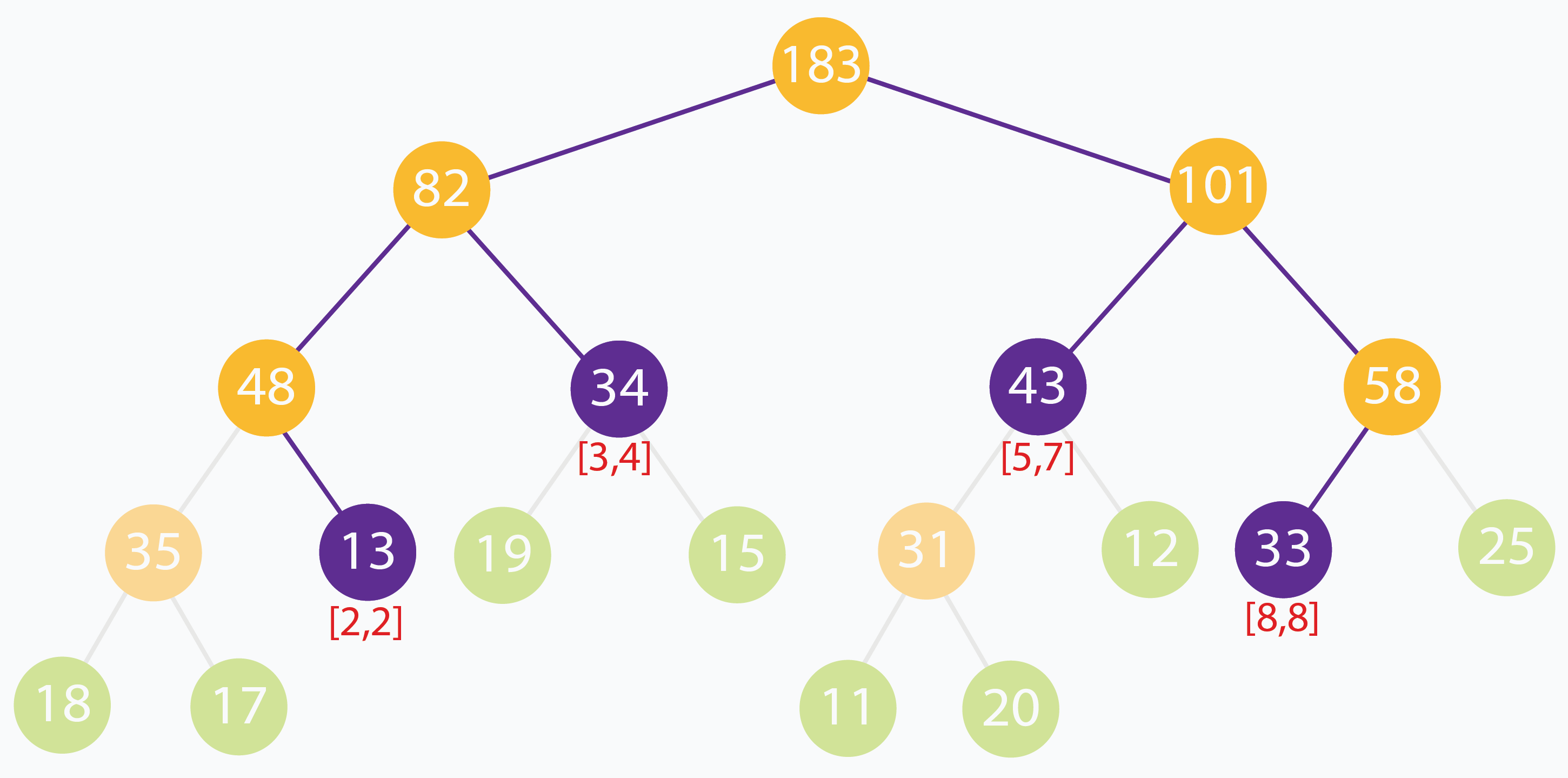 Ví dụ với arr[] = [18, 17, 13, 19, 15, 11, 20, 12, 33, 25], cây đoạn sẽ như sau: