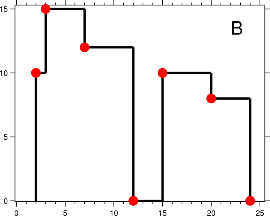 - Duy trì các điểm gãy (turning points): có những toà nhà chỉ chồng một phần, khiến skyline xuất hiện điểm gãy (điểm đỏ trong hình). BIT xử lý các điểm này như thế nào?