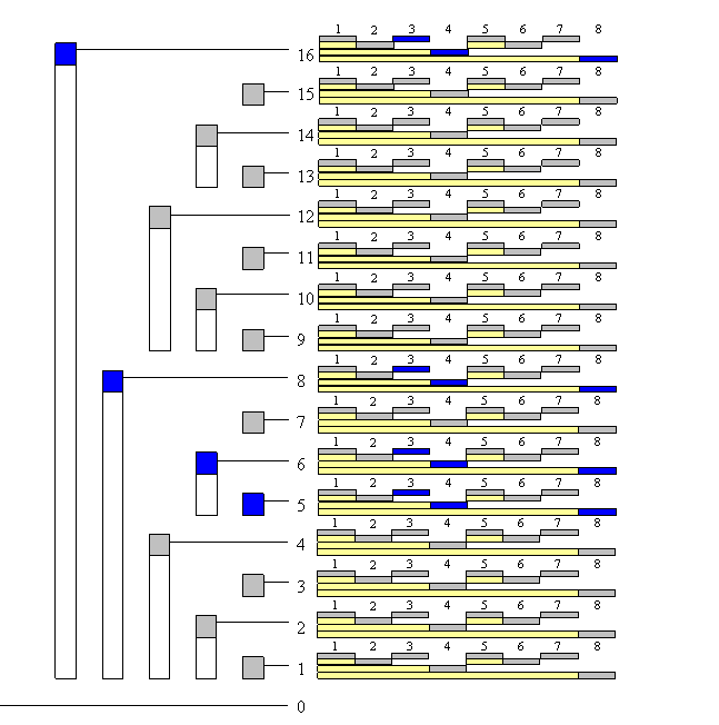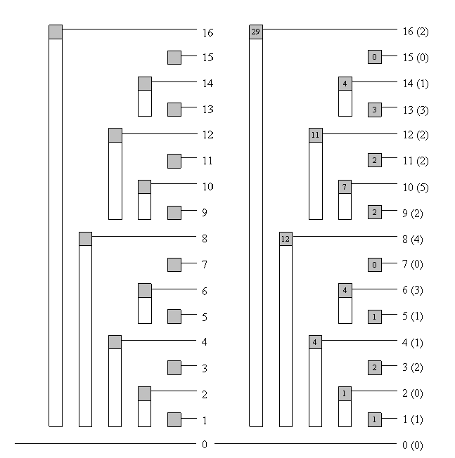 Có thể chứng minh bằng quy nạp rằng biên trái luôn là: trong đó là chỉ số nút (đang xét như nút cha) và là số lượng số 0 ở cuối trong biểu diễn nhị phân của . Khi đó tổng mà nút lưu là: